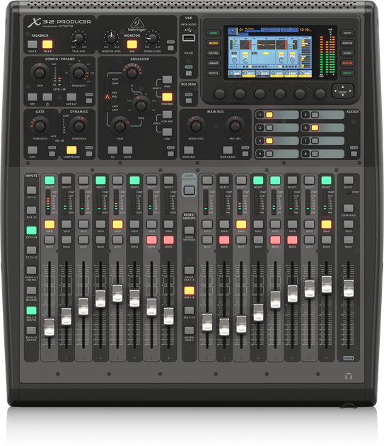 X32 PRODUCER to solidny, a jednocześnie kompaktowy mikser, który posiada wszystkie podstawowe funkcje i przetwarzanie flagowej konsolety BEHRINGER X32 w mniejszym formacie. Zmotoryzowane suwaki i enkodery wraz z ekranem TFT czytelnym w świetle dziennym zapewniają natychmiastowy dostęp do kluczowych funkcji z pełnym i automatycznym przywoływaniem ustawień. Rozbudowane I/O obejmuje konwertery Cirrus Logic, 96 dwukierunkowych kanałów przez SuperMAC AES50, 16 kanałów monitoringu osobistego BEHRINGER Ultranet oraz 32 x 32 kanały do nagrywania przez USB.