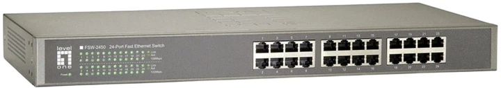 LevelOne FSW-2450 — це 24-портовий некерований комутатор Fast Ethernet, призначений для малого бізнесу та робочих груп, яким потрібен надійний високошвидкісний інтерфейс між файловими серверами, підрозділами та офісними користувачами. Оснащений 24 портами 10/100BASE-TX, він забезпечує стабільну продуктивність для щоденних завдань, зокрема спільного доступу до файлів, друку та IP-орієнтованих сервісів.
