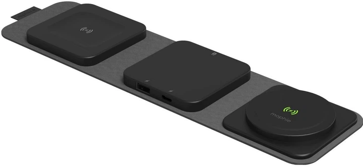 Czy masz czasem wrażenie, że potrzebujesz osobnej walizki na ładowarki i kable? Mata ładująca Snap+ Travel Charger ma wszystko, czego potrzebujesz, by wygodnie ładować swoje urządzenia w podróży. Telefon i słuchawki AirPods zasilane są bezprzewodowo z mocą 5 W – 15 W, a wbudowane porty USB-C i USB-A umożliwiają podłączenie dwóch dodatkowych urządzeń. Po zakończeniu ładowania matę można zwinąć i schować do kompaktowego podróżnego etui.