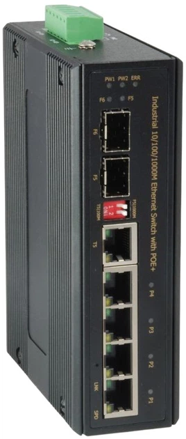 LevelOne IES-0620 to wytrzymały 6-portowy przemysłowy przełącznik Gigabit PoE przeznaczony do sieci o znaczeniu krytycznym, wymagających zarówno szybkiej łączności, jak i niezawodnego zasilania PoE. Posiada 4 porty Gigabit RJ45 z obsługą PoE, 1 dedykowane gniazdo Gigabit SFP oraz 1 gniazdo combo Gigabit SFP/RJ45, oferując elastyczne opcje łącza światłowodowego lub miedzianego do zastosowań w monitoringu, transporcie i automatyce przemysłowej.