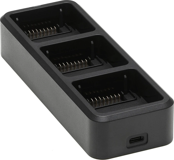 Po podłączeniu do dedykowanego zasilacza DJI Mavic 3 100W, koncentrator ładowania rozszerza interfejs ładowania, umożliwiając podłączenie do trzech akumulatorów jednocześnie.