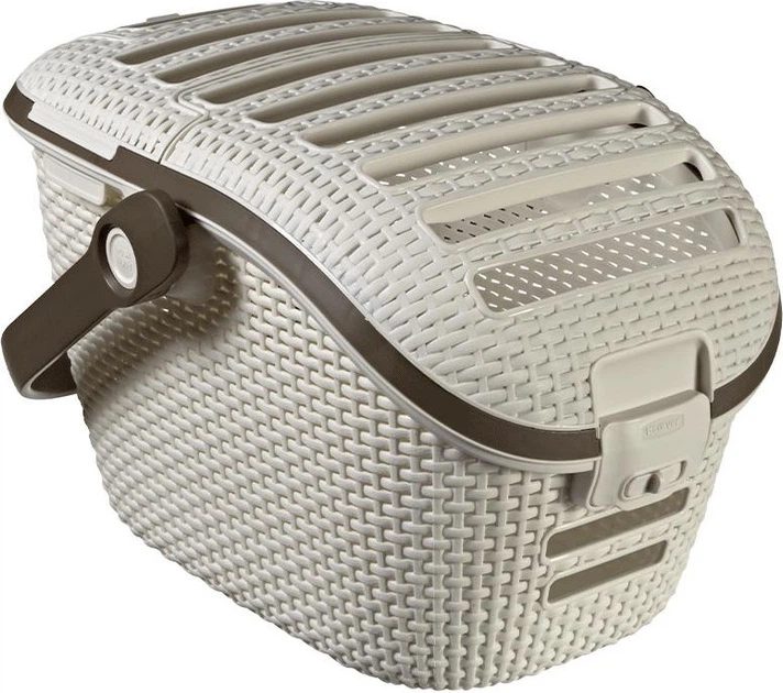 Transporter dla zwierząt z rączką CURVER PETLIFE Stylowy i wygodny transporter o wyglądzie kosza wiklinowego dla zwierzaka od Curver zapewni komfort pupilowi zarówno w krótkich jak i dłuższych podróżach.Swoją budową zapewni poczucie bezpieczeństwa i przytulności.