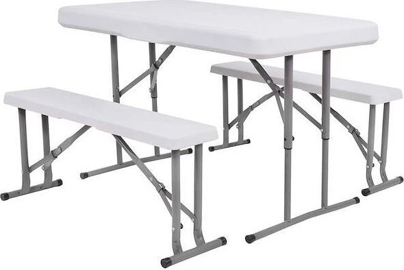 Zestaw cateringowy Springos GF0096 to praktyczne, wygodne i wszechstronne rozwiązanie do organizacji przestrzeni podczas uroczystości, pikników, imprez plenerowych, a także do użytku w ogrodzie lub na tarasie. Zestaw składa się ze stołu jadalnego i dwóch ławek, przeznaczonych dla 6 osób, i wyróżnia się solidną i stabilną konstrukcją. Blat i siedziska wykonane są z odpornego na uderzenia tworzywa HDPE, a rama z metalu z powłoką antykorozyjną, co zapewnia trwałość i odporność na warunki atmosferyczne. Materiały są łatwe w czyszczeniu, dzięki czemu zestaw doskonale nadaje się zarówno do użytku wewnątrz, jak i na zewnątrz. Dzięki mechanizmowi szybkiego składania i blokowania zestaw zamienia się w kompaktową „walizkę”, a ławki wygodnie chowają się wewnątrz złożonego stołu, co znacznie ułatwia transport i przechowywanie. Stół ma wymiary 105×64×70 cm, grubość krawędzi 8 cm i rozstaw nóg 83 cm, a po złożeniu – 105×64×8 cm. Ławki mają siedzisko o wymiarach 85×20.5 cm, wysokość 40 cm i składają się do kompaktowych rozmiarów 85×26×7.5 cm. Maksymalne obciążenie zestawu wynosi 150 kg, co gwarantuje niezawodność podczas użytkowania. To idealny wybór dla osób ceniących mobilność, funkcjonalność i trwałość.