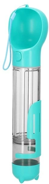- Typ: wielofunkcyjna butelka na wodę dla psa z poidełkiem, łopatką oraz z pojemnikami na karmę i worki