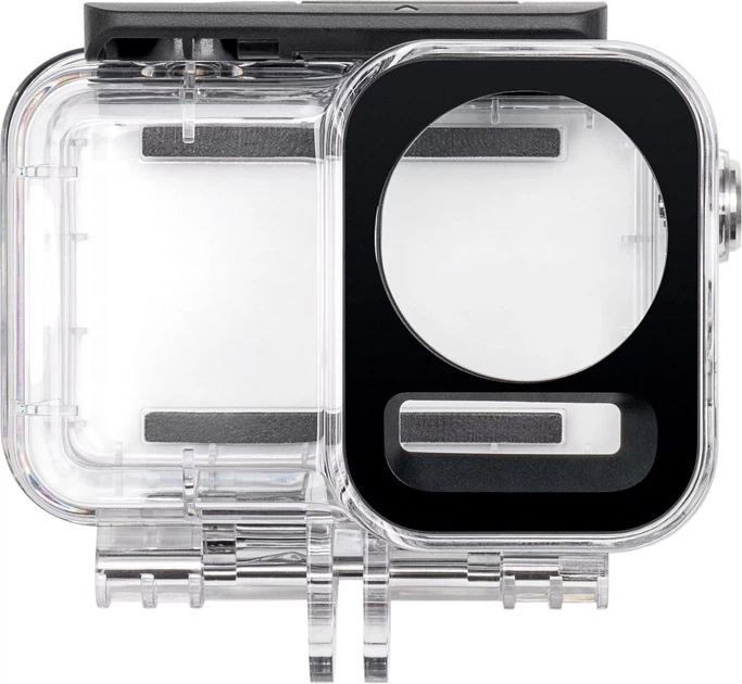 Zapewnia ochronę wodoodporną na głębokości do 60 metrów, dając nurkom większą swobodę w eksploracji i nagrywaniu. Wykorzystuje szkło o wysokiej wytrzymałości, aby zapewnić jaśniejszy i pewniejszy obraz. Przed użyciem zamknij pokrywę komory baterii oraz pokrywę portu USB-C i dokręć osłonę obiektywu. Zaleca się stosowanie wodoodpornej obudowy do długotrwałych nagrań pod wodą lub w środowiskach o wysokim ciśnieniu wody. Wodoodporna obudowa Osmo Action 3 posiada klasę wodoodporności IP68. Nie używaj kamery w gorących źródłach ani nie narażaj jej na działanie cieczy korozyjnych.