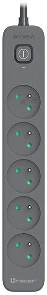 Listwa zasilająca wyposażona w: podświetlony wyłącznik, system blokad mechanicznych chroniących dzieci przed możliwością porażenia prądem przy próbie kontaktu z przewodem fazowym oraz wysokiej jakości przewód sieciowy zgodny z normą VDE.