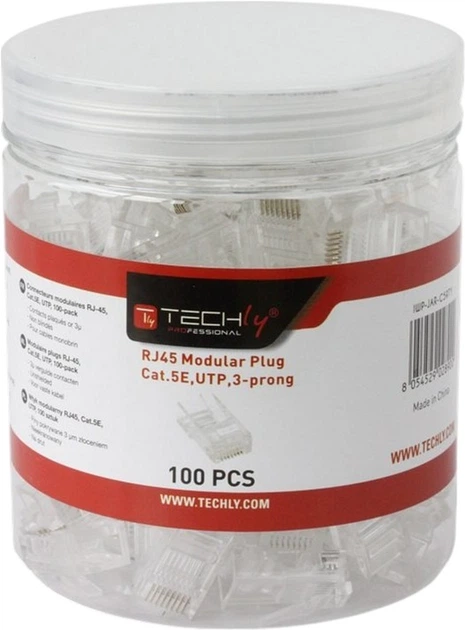Techly 028900 to wysokiej jakości złącze modularne RJ45 Cat5e UTP, zaprojektowane do pracy z kablami o żyłach jednodrutowych. Gwarantuje stabilne i niezawodne połączenie w sieciach Ethernet, spełniając wymagania kategorii 5e oraz standardu RJ-45. Przezroczysta obudowa ułatwia montaż, pozwalając na kontrolę prawidłowego ułożenia przewodów.