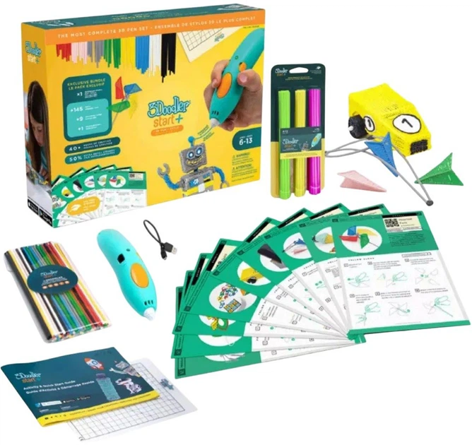 Перетворіть двовимірні ідеї на тривимірні творіння за допомогою розширеного набору 3Doodler Start Plus Costc. Цей інструмент підтримує розвиток креативності та ручних навичок, дозволяючи дітям інтуїтивно будувати та експериментувати. Об'єкти набувають форми в просторі за лічені секунди, що дозволяє їм швидко реалізувати свої художні задуми. Ручка відкриває шлях у світ 3D-друку, пропонуючи захоплюючу гру без необхідності освоєння складних графічних програм. Безпека та екологічність змінних
