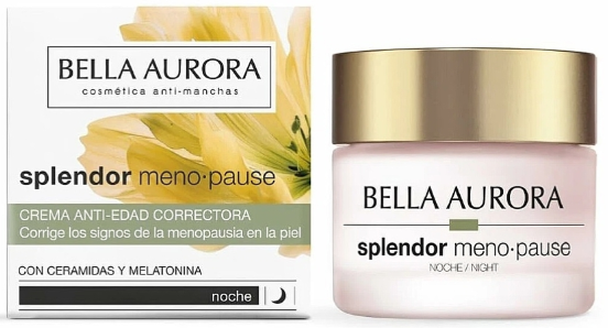 Bella Aurora Splendor Meno-Pause Night Cream to krem przeciwzmarszczkowy na noc, opracowany specjalnie dla kobiet w okresie menopauzy, które chcą kontrolować zmiany hormonalne wpływające na ich skórę.