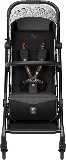 Wygodne pasy i barierka. Magnetyczne 5-punktowe pasy gwarantują bezpieczeństwo i wygodę użytkowania — ich zapinanie i odpinanie zajmuje zaledwie kilka sekund. Pasy mają również wygodną regulację wysokości, co pozwala dostosować je do wzrostu dziecka lub grubości ubrania bez konieczności przepinania. Ponadto obrotowa barierka, którą można odpiąć z obu stron, ułatwia wkładanie i wyjmowanie dziecka z wózka, zapewniając rodzicom maksymalny komfort.