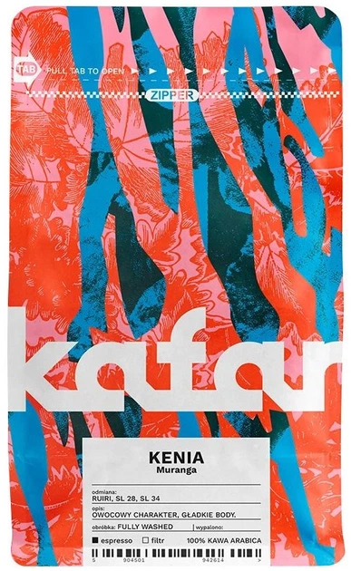 Ziarnista kawa specialty z Kenii, wypalana w Polsce w palarni Kafar w Gliwicach. Pochodzi z regionu Murang’a, z plantacji położonych na wysokości 1660–1800 m n.p.m. Ziarna 100% Arabica odmian Ruiru, SL28 i SL34 poddane zostały pełnej obróbce washed, co nadaje kawie wyjątkową czystość i owocowy charakter. Średni stopień palenia idealnie podkreśla naturalną kwasowość oraz gładkie body naparu.