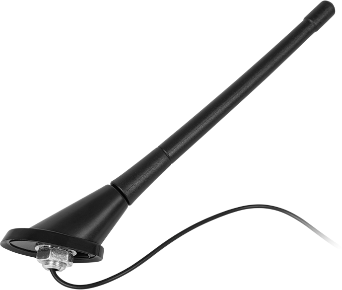 Kompaktowy maszt o długości 17.5 cm i kącie nachylenia 72° zapewnia dobrą skuteczność odbioru przy jednoczesnym zachowaniu dyskretnego wyglądu na dachu pojazdu. Pasywna konstrukcja anteny nie wymaga dodatkowego zasilania ani ingerencji w instalację elektryczną, co upraszcza montaż i zwiększa niezawodność użytkowania.