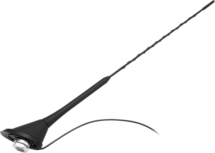 Maszt o długości 40 cm i kącie nachylenia 72° zapewnia stabilny i pewny odbiór sygnału, także w trudniejszych warunkach terenowych. Zastosowane wzmocnienie FM na poziomie +8 dB przekłada się na lepszą jakość dźwięku, mniejszą podatność na zakłócenia oraz bardziej stabilny odbiór stacji radiowych podczas jazdy.