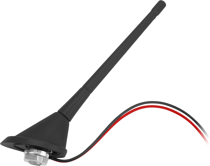 Krótki maszt o długości 17.5 cm i kącie nachylenia 72° zapewnia stabilny odbiór sygnału radiowego przy zachowaniu kompaktowego i estetycznego wyglądu. Wbudowane wzmocnienie FM na poziomie +8 dB pozwala uzyskać lepszą jakość dźwięku oraz pewniejszy odbiór stacji radiowych, także w warunkach słabszego zasięgu.