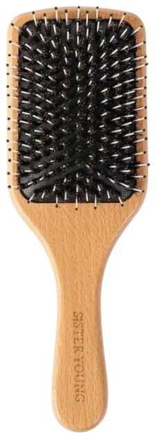 Szczotka do włosów Sister Young Vera to drewniana szczotka z naturalną szczeciną dzika oraz włosiem nylonowym, przeznaczona do rozczesywania, suszenia i prostowania wszystkich rodzajów włosów. Doskonale wygładza pasma, nadając im zdrowy wygląd i naturalny blask, bez efektu puszenia. Połączenie dwóch rodzajów włosia sprawia, że szczotka delikatnie przesuwa się po włosach, skutecznie radząc sobie nawet z trudnymi do rozczesania splątaniami.