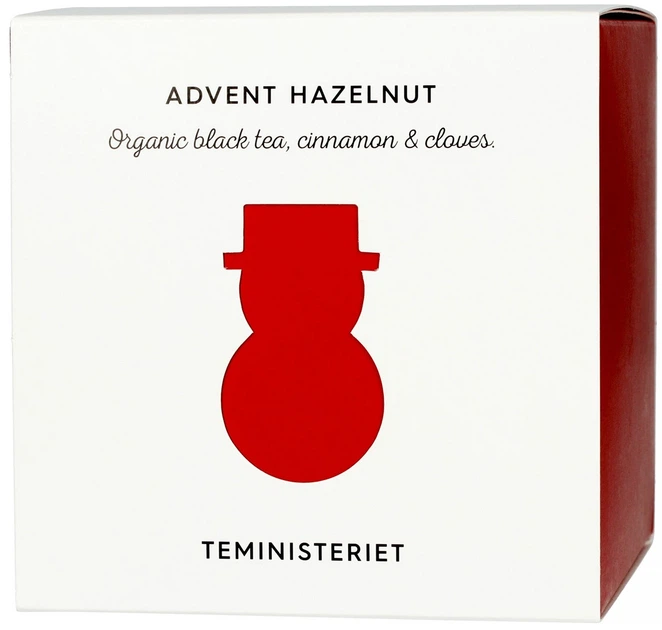 Teministeriet Advent Hazelnut to aromatyczna czarna herbata liściasta z dodatkiem kawałków orzechów laskowych, cynamonu, wanilii i delikatnych nut owocowych, która tworzy ciepły i świąteczny smak o łagodnej intensywności. Napój ma aksamitny smak, w którym harmonijnie łączą się nuty orzechowe, korzenne i słodkie, a duże liście pozwalają im w pełni rozwinąć się podczas parzenia, zachowując świeżość i aromat. Herbata idealnie nadaje się do przytulnego picia o każdej porze dnia, tworząc uczucie ciepła i świątecznego nastroju.