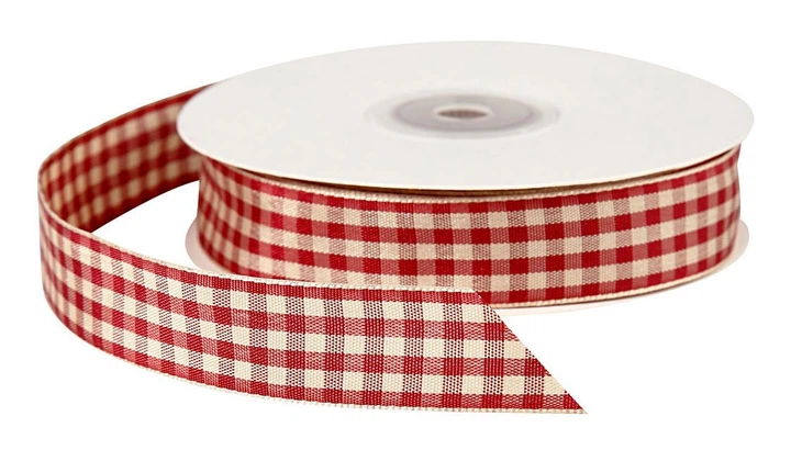 Dwustronna taśma dekoracyjna Creativ Company w kolorze kratki biało-antycznej czerwieni