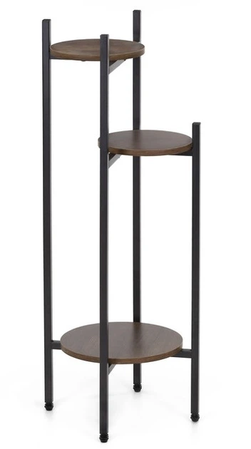 Wielopoziomowy stojak na kwiaty do idealny produkt dla miłośników roślin. Można na nim umieścić najróżniejsze okazy i wyeksponować pięknie zdobione doniczki. Kwietnik został wykonany z metalu, dlatego nadaje wnętrzom wyjątkowego, industrialnego charakteru. Ponadto jest trwały, wytrzymały i stabilny, dzięki czemu bez obaw utrzyma nawet ciężkie doniczki. Czarno-brązowa kolorystyka pasuje praktycznie do każdego wystroju wnętrza, stanowiąc uniwersalny dodatek o wielu walorach praktycznych i estetycznych. Nasz stojak jest nie tylko estetyczny, ale i wygodny w użytkowaniu – każdy kwiat będziesz miała pod ręką, więc utrzymanie czystości i podlewanie roślin stanie się dla ciebie niezwykle proste.
