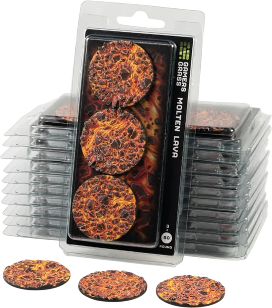 Ożyw swoje figurki i dioramy dzięki niesamowicie szczegółowym toperom Molten Lava! Te gotowe, pomalowane podstawki w stylu płynnej lawy przeniosą Twoje dioramy i armie wprost do piekielnych krajobrazów. Pęknięcia w ziemi, rozszczepione skały i wybuchy gorącej magmy stworzą dramatyczne tło, idealne do niebezpiecznych misji i chaotycznych bitew.