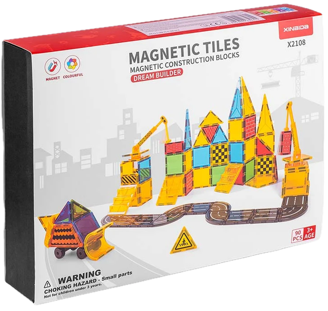 Zestaw zawiera 72 elementy klocków w różnych kształtach klocki łączone na magnes.