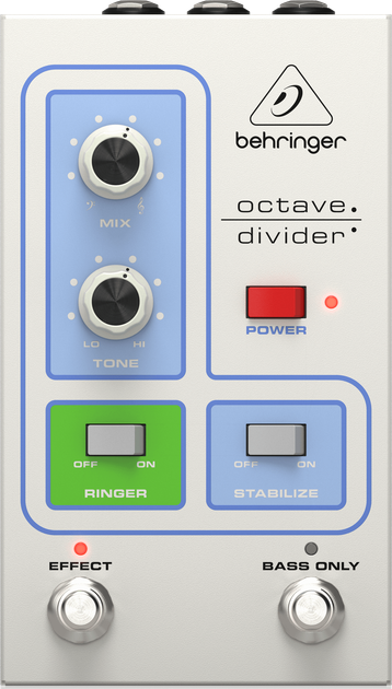 To przecież nie tylko kwestia dodania suboktawowego sygnału do tego, co grasz, prawda? OCTAVE DIVIDER posiada niesamowitą funkcję RINGER, która dodaje odpowiedni poziom harmonicznego akcentu na wyższych tonach oraz specjalne efekty wielonutowe dzięki wbudowanemu ring modulatorowi. Jeśli chcesz używać OCTAVE DIVIDER do zagęszczania bardziej złożonych riffów albo po prostu pragniesz mocnej linii basowej do legato, przełącznik Stabilize pomoże poprawić śledzenie nut.