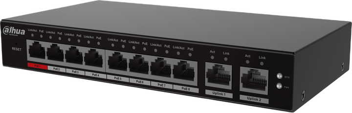 Przełącznik zarządzany w chmurze to komercyjny przełącznik warstwy 2 z funkcją PoE dalekiego zasięgu. Może zasilać urządzenia oddalone o nawet 250 metrów. Czerwony port PoE dostarcza do 90 W. Przełącznikiem można zarządzać za pomocą aplikacji DoLynk Care, która umożliwia dostęp do funkcji diagramu topologii sieci, pozwalającej na szybką identyfikację problemów.