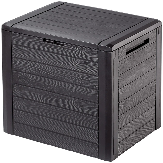 Ящик для зберігання Kadax Grewena К7991 — це міцний та місткий пластиковий контейнер, призначений для організованого зберігання речей у саду, на балконі, терасі або в господарських приміщеннях. Він виготовлений із високоякісного пластику, який стійкий до вологи, ультрафіолету та перепадів температур, тому зберігає форму й колір навіть за тривалого використання на відкритому повітрі. Поверхня ящика імітує структуру натуральних дерев’яних дощок, завдяки чому він виглядає естетично та гармонійно вписується в будь‑який садовий інтер’єр. Конструкція оснащена кришкою, яка захищає вміст від дощу, пилу та забруднень, а також може бути додатково зафіксована замком для безпечного зберігання. Завдяки продуманій вентиляції всередині не накопичується волога, що запобігає появі неприємних запахів. Ящик має зручні бічні ручки для перенесення та достатній об’єм для зберігання подушок, пледів, садових інструментів, іграшок або аксесуарів для грилю. Він поєднує практичність, довговічність і привабливий дизайн, роблячи її універсальним рішенням для підтримання порядку в домі та на подвір’ї.