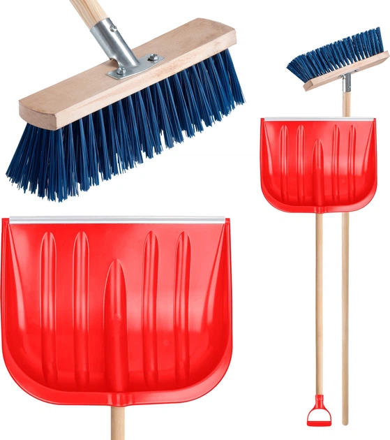 Oba narzedzia posiadaja dlugie drewniane trzonki, ktore charakteryzuja sie lekkoscia i pozwalaja na prace w pozycji przyjaznej dla plecow, minimalizujac zmeczenie. Lopata wyposazona jest w ergonomiczny uchwyt typu D dla stabilnego trzymania i precyzyjnego manewrowania, natomiast calkowita dlugosc szczotki wynosi 153 cm, co znacznie zwieksza efektywnosc sprzatania duzych powierzchni. Zestaw wykonano z mrozoodpornych i solidnych materialow, co gwarantuje jego trwalosc i odpornosc na trudne warunki pogodowe przez wiele lat.