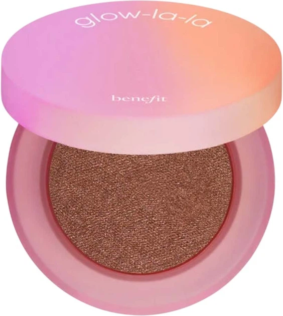 Benefit Glow-La-La Powder Highlighter — це пудровий хайлайтер, який надає шкірі ніжний, відбиваючий світло блиск «glass skin». Формула цього високоякісного продукту поєднує в собі легкість і шовковистість пудри, завдяки чому він ніжно лягає на шкіру і забезпечує рівномірне розподілення світла. Надає обличчю природного сяйва без ефекту важкої текстури, одночасно забезпечуючи делікатне розмиття нерівностей.