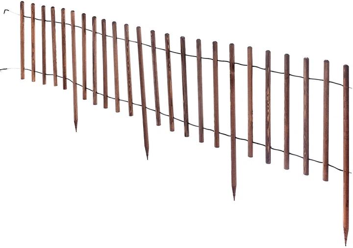 Ogrodzenie Kadax Dalum K8984 to solidna, brązowa, drewniana konstrukcja, idealna do ogradzania rabat kwiatowych, klombów i ochrony roślin przed zwierzętami. Ma nieregularny kształt i długość 230 cm, co pozwala stworzyć naturalny i harmonijny wygląd ogrodu. Maksymalny rozstaw słupków wynosi 7 cm, co zapewnia gęstość i stabilność ogrodzenia. Paliki o długości 80 cm gwarantują pewny montaż konstrukcji w gruncie. Model jest odporny na promieniowanie ultrafioletowe, wilgoć i warunki atmosferyczne, dzięki czemu zachowuje swoje właściwości przez długi czas. Ogrodzenie wymaga prostego montażu, który nie wymaga użycia specjalistycznych narzędzi. Będzie praktycznym rozwiązaniem do uprawy warzyw, roślin i kwiatów, a także do zagospodarowania przestrzeni ogrodowej.