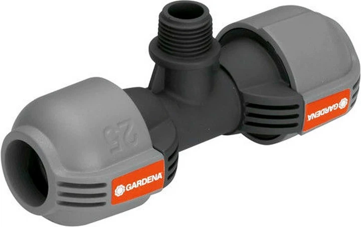Złącze węża ogrodowego Gardena 901018001 to niezawodny rozdzielacz w kształcie litery T, przeznaczony do łączenia i rozgałęziania rur w systemach nawadniających Gardena. Wykonany jest z wytrzymałego tworzywa sztucznego, odpornego na ciśnienie, wilgoć i obciążenia mechaniczne, co zapewnia trwałość nawet przy intensywnym użytkowaniu. Model wyposażony jest w gwint zewnętrzny 25 mm x 1/2" i obsługuje technologię Quick & Easy, która pozwala na szybkie i szczelne łączenie elementów bez użycia narzędzi. Złącze nadaje się do montażu zraszaczy, turbinowych i wynurzalnych, zapewniając stabilny przepływ wody i niezawodną pracę całego systemu.