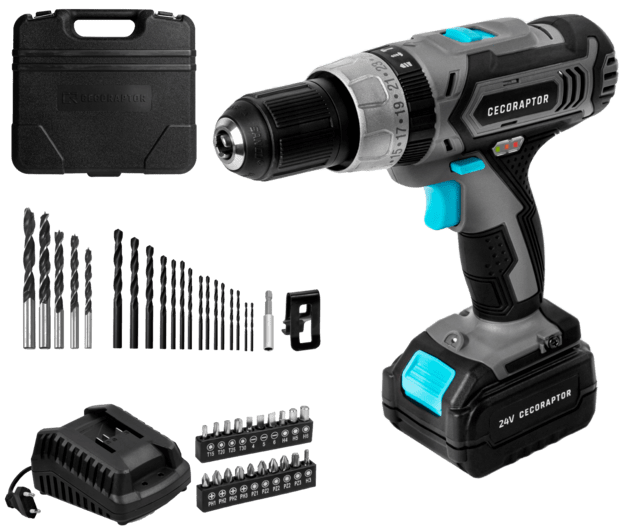 • Bezprzewodowa wiertarka udarowa z akumulatorem 24 V 2000 mAh.