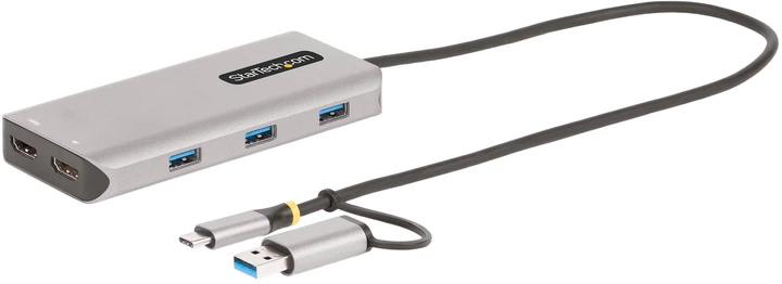 Adapter wieloportowy jest kompatybilny z systemami Windows, macOS oraz Chrome OS. Dołączony adapter USB-C do USB-A zapewnia bezproblemową kompatybilność z każdym komputerem hosta działającym na obsługiwanym systemie operacyjnym. Urządzenie obsługuje tryb dwóch rozszerzonych wyświetlaczy na MacBookach Apple z procesorami M1, M2 i M3, które natywnie nie obsługują więcej niż jednego zewnętrznego monitora.
