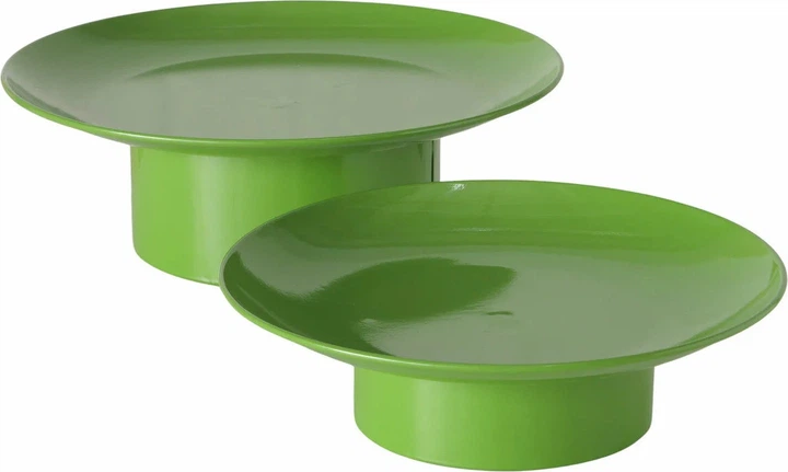 Metalowe patery na nóżce Plana od Boltze to stylowy i praktyczny zestaw do serwowania przekąsek i ciast, który łączy estetykę z funkcjonalnością. W zestawie znajdują się dwie patery o średnicach 32,5 cm i 28 cm, co pozwala wygodnie podawać różne potrawy i efektownie aranżować stół.
