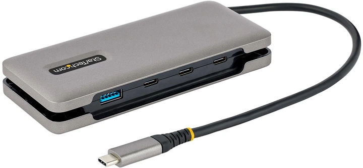 Dzięki jednemu portowi USB Type-A oraz trzem portom USB Type-C, a także wstecznej kompatybilności z USB 3.2 Gen 1 (5 Gb/s) i USB 2.0 (480 Mb/s), hub obsługuje zarówno nowoczesne, jak i starsze urządzenia USB. Umożliwia podłączanie pamięci flash, urządzeń do przechwytywania wideo oraz zewnętrznych dysków twardych z prędkością transferu danych do 10 Gb/s. Ten hub USB-C zwiększa produktywność, zapewniając niezbędne złącza do efektywnej pracy z wieloma urządzeniami peryferyjnymi.