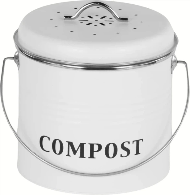 Praktyczny design: Domowy metalowy kompostownik o pojemności 3,5 l to idealne rozwiązanie do przechowywania odpadów organicznych. Kompaktowe wymiary (21 × 19,5 × 21 cm) pozwalają umieścić go w każdej kuchni, a estetyczny wygląd dodaje uroku wnętrzu.
