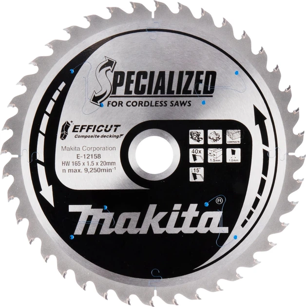 Tarcza tnąca Makita Efficut T.C.T 20 x 165 mm 40Z do desek kompozytowych (E-12158) - obraz 1