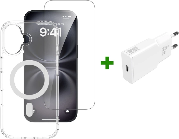 Zestaw startowy 4smarts 3 w 1 Premium do Apple iPhone 17 zawiera etui kompatybilne z MagSafe z idealnie dopasowanymi, zintegrowanymi magnesami, które idealnie dopasowują się do smartfona, zapewniając łatwe mocowanie i szybsze ładowanie bezprzewodowe.