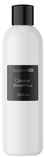 Excellent Pro Cleaner Shine & More – to produkt 2 w 1, który łączy w sobie właściwości środka czyszczącego i dodatkowego nabłyszczacza o przyjemnym, intensywnym zapachu. Skutecznie usuwa lepką warstwę dyspersyjną powłok wykończeniowych i nadaje paznokciom połysk po użyciu powłoki wierzchniej, która wymaga usunięcia. Cleaner Shine & More zawiera olejek nawilżający, dlatego nie nadaje się do przygotowania paznokci, ponieważ nie odtłuszcza ich i nie matuje, a pozostawia tłustą warstwę. Ten produkt o delikatnym zapachu można również stosować zamiast olejku do smarowania wałków paznokciowych. Zalecamy stosowanie tego produktu do usuwania warstwy dyspersyjnej z One Coat Top Shine & More.