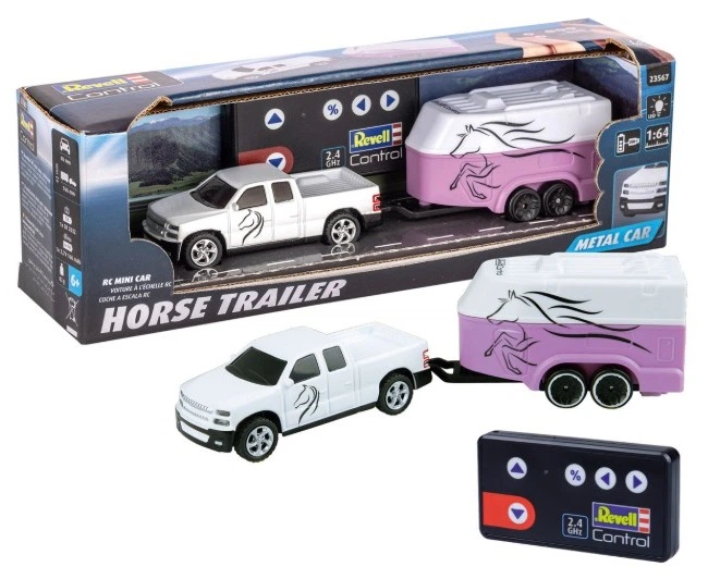 Gotowy do dynamicznej zabawy w miniaturowym świecie, samochód RC z przyczepą do przewozu koni to propozycja, która łączy realizm i świetną zabawę. W skali 1:64 odwzorowano każdy detal – od solidnego, metalowego nadwozia pick-upa, po efektowną, dwukolorową przyczepę z grafiką galopującego konia. Model sterowany jest pilotem 2,4 GHz, co zapewnia precyzyjne manewrowanie bez zakłóceń, a trzy tryby prędkości pozwalają dopasować jazdę do umiejętności użytkownika.