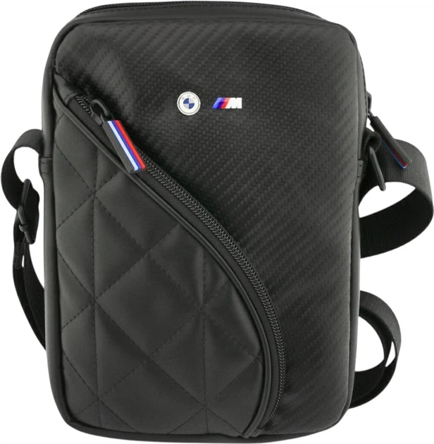 Torba BMW Carbon Pockets & Metal Logo  to kompaktowe, stylowe i niezwykle funkcjonalne akcesorium stworzone z myślą o użytkownikach małych tabletów, czytników oraz akcesoriów mobilnych. Nawiązując do sportowego DNA marki BMW, torba wykorzystuje wysokiej jakości materiał o strukturze carbonu, który nadaje jej dynamiczny, nowoczesny wygląd oraz doskonałą trwałość w codziennym użytkowaniu. Front torby zdobi solidne, metalowe logo BMW, podkreślające prestiż oraz ekskluzywny charakter całej kolekcji. Precyzyjne wykończenia, eleganckie linie oraz detale inspirowane motoryzacją sprawiają, że torba doskonale pasuje zarówno do biznesowych stylizacji, jak i codziennego stroju.