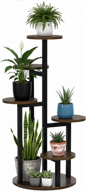 5-poziomowy stojak na kwiaty to stylowy sposób na stworzenie domowej strefy zieleni. Metalowa konstrukcja zapewnia stabilność i trwałość na długi czas użytkowania. Ciemnobrązowy odcień dodaje całości elegancji i naturalnego ciepła. Kwietnik pozwala wyeksponować kilka roślin jednocześnie, zachowując porządek i estetykę. Pionowa forma sprawia, że nawet niewielka przestrzeń może zyskać wyjątkowy charakter. Różne poziomy umożliwiają ciekawe aranżacje roślinne. Każda doniczka ma swoje miejsce i jest dobrze widoczna. Konstrukcja stojąca pozwala łatwo przestawiać kwietnik w zależności od potrzeb.