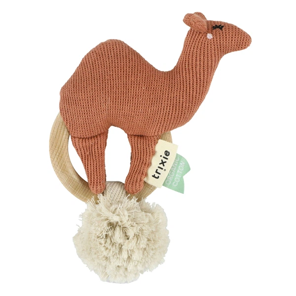 М'яка іграшка, що заспокоює новонароджених, з дерев'яним обручем. Виготовлена з органічної бавовни з наповнювачем з перероблених матеріалів і повністю безпечна у використанні. Її розміри пристосовані для того, щоб її могли тримати маленькі ручки. Рекомендується прати при 30°, сушити в сушарці: ні, прасувати: ні, хімічно чистити: ні, відбілювати: ні.