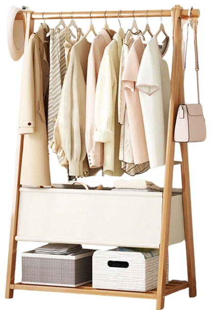 Wieszak na ubrania Hedo 98391 bambusowy z torbą do przechowywania i półką na akcesoria 86 cm (5904041149351).