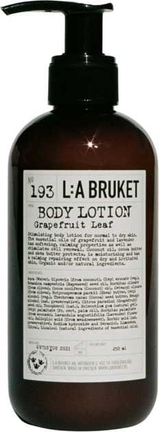 L:A Bruket Body Lotion to intensywnie nawilżający i odżywczy balsam do ciała, który został stworzony, aby chronić skórę przed suchością, wspierać jej naturalną barierę ochronną oraz pozostawiać ją wyjątkowo miękką i gładką. Dzięki starannie dobranej kompozycji składników balsam szybko się wchłania, nie pozostawiając tłustej warstwy, co sprawia, że idealnie nadaje się do codziennej pielęgnacji.