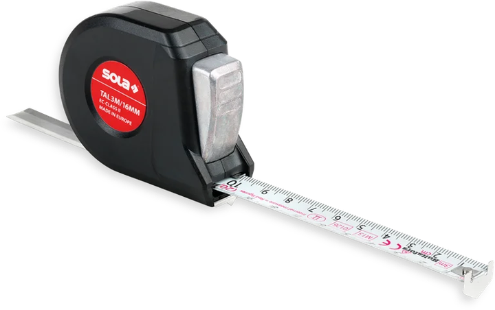 Miara zwijana Sola TAL 3 3 m × 16 mm (51011601) to kompaktowe narzędzie pomiarowe przeznaczone do prac montażowych, remontowych i warsztatowych. Niewielkie wymiary obudowy ułatwiają przechowywanie i transport, a ergonomiczny kształt zapewnia wygodne użytkowanie podczas codziennych pomiarów.