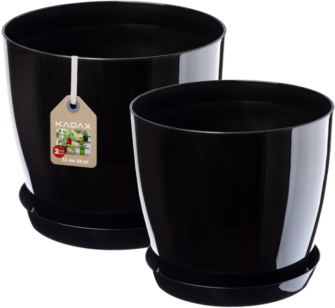 Doniczka Kadax K8167 z podstawką (zestaw 2 szt.) to elegancki i nowoczesny zestaw stworzony z myślą o osobach ceniących stylowe wnętrza i pragnących podkreślić piękno swoich roślin. Wyrafinowany design, lekka powierzchnia i płynne linie sprawiają, że doniczki te stanowią uniwersalny element dekoracyjny, który harmonijnie wpasuje się w każde pomieszczenie – od salonu, przez sypialnię, po gabinet. Doniczki idealnie nadają się do szerokiej gamy roślin: dracen, storczyków, fiołków, azalii, kalanchoe, kaktusów, klonów i innych gatunków ozdobnych. Ze względu na swój przestronny kształt, doskonale sprawdzają się w przypadku roślin rozłożystych, pozwalając tworzyć wyraziste zielone kompozycje. Najlepiej umieścić je w dobrze oświetlonych pomieszczeniach, gdzie będą prezentować się szczególnie efektownie. Wykonane z lekkiego i wytrzymałego tworzywa sztucznego doniczki są odporne na wilgoć i środki chemiczne, dzięki czemu są bezpieczne dla roślin i łatwe w pielęgnacji. W zestawie znajdują się podstawki, które zapobiegają ślizganiu się, zbierają nadmiar wody i chronią powierzchnie przed zarysowaniami i zabrudzeniami. Model przeznaczony jest wyłącznie do użytku wewnątrz pomieszczeń. Wymiary doniczki: Doniczka 1: 21 × 18 × 23 cm, Doniczka 2: 25 × 22 × 28 cm. To doskonały wybór do Twojego domu, a także stylowy prezent na parapetówkę lub inną wyjątkową okazję.