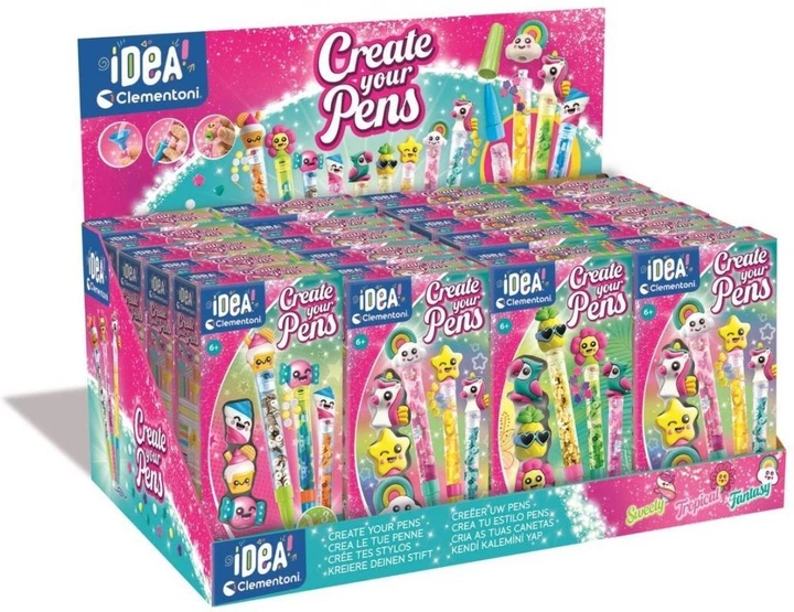 Ten oryginalny zestaw kreatywny pozwala samodzielnie składać i personalizować długopisy według trzech różnych motywów tematycznych. W komplecie znajdują się długopisy, wymienne tusze w różnych kolorach, dekoracyjne figurki oraz wszystkie niezbędne narzędzia do ich wykonania.