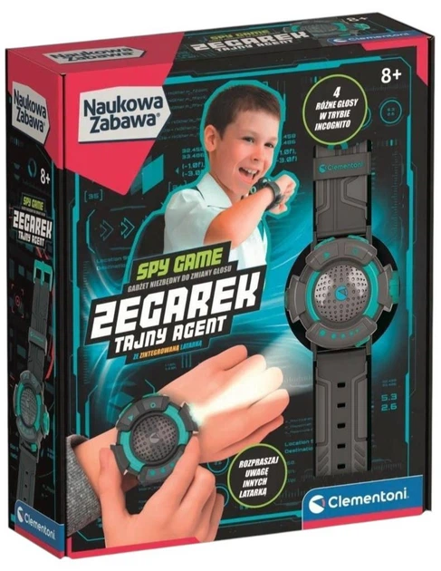 Zostań prawdziwym agentem dzięki szpiegowskiemu narzędziu udającemu zwykły zegarek na rękę. Dzięki niemu możesz zmienić swój głos! Nagrywaj wiadomości trwające maksymalnie 50 sekund i odtwarzaj dźwięk zniekształcony za pomocą 4 filtrów zmiany głosu! Korzystaj z latarki, aby rozpraszać uwagę osób wokół ciebie.