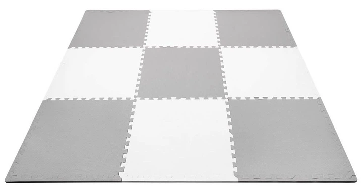 Mata została wykonana z wysokiej jakości pianki EVA, która jest miękka, sprężysta i odporna na uszkodzenia. Wytłaczana, antypoślizgowa powierzchnia zwiększa bezpieczeństwo, zapobiegając ślizganiu się podczas zabawy lub ćwiczeń. Stonowana kolorystyka w odcieniach bieli i szarości sprawia, że mata estetycznie komponuje się z nowoczesnymi wnętrzami.